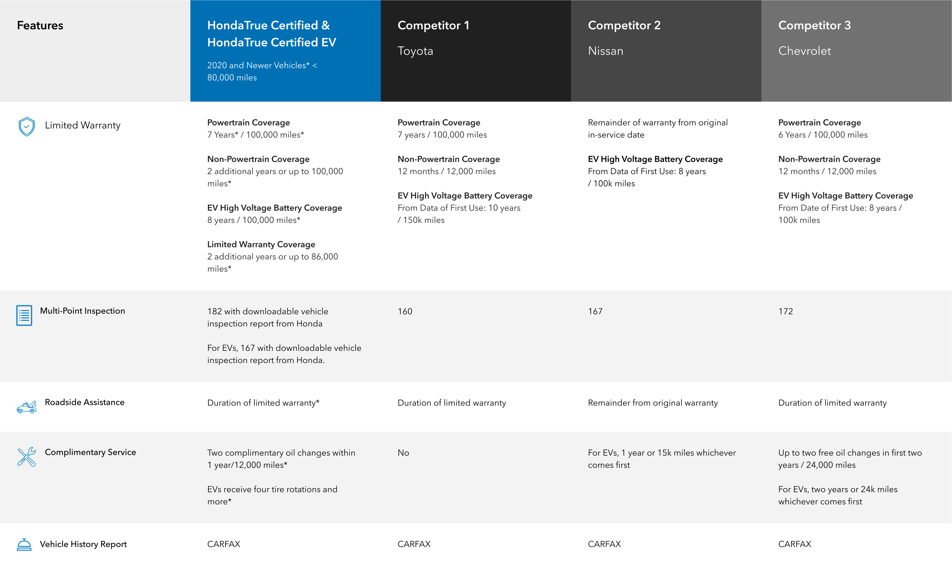See how HondaTrue Certified Pre-Owned Vehicles stack up against the competition.