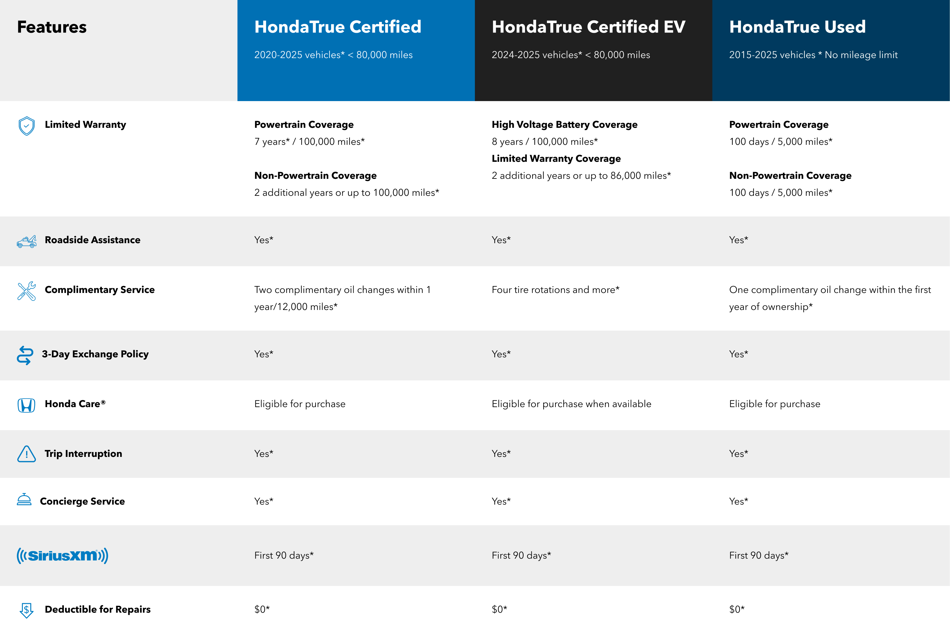 Every HondaTrue vehicle receives a Honda-backed limited warranty, so you can feel confident at the dealership and on the road.